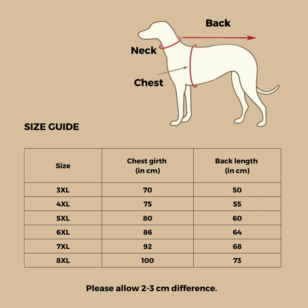 Please check your dog’s measurements against the size guide to ensure the correct fit. If your dog’s measurements fall between two sizes, we recommend choosing the larger size.