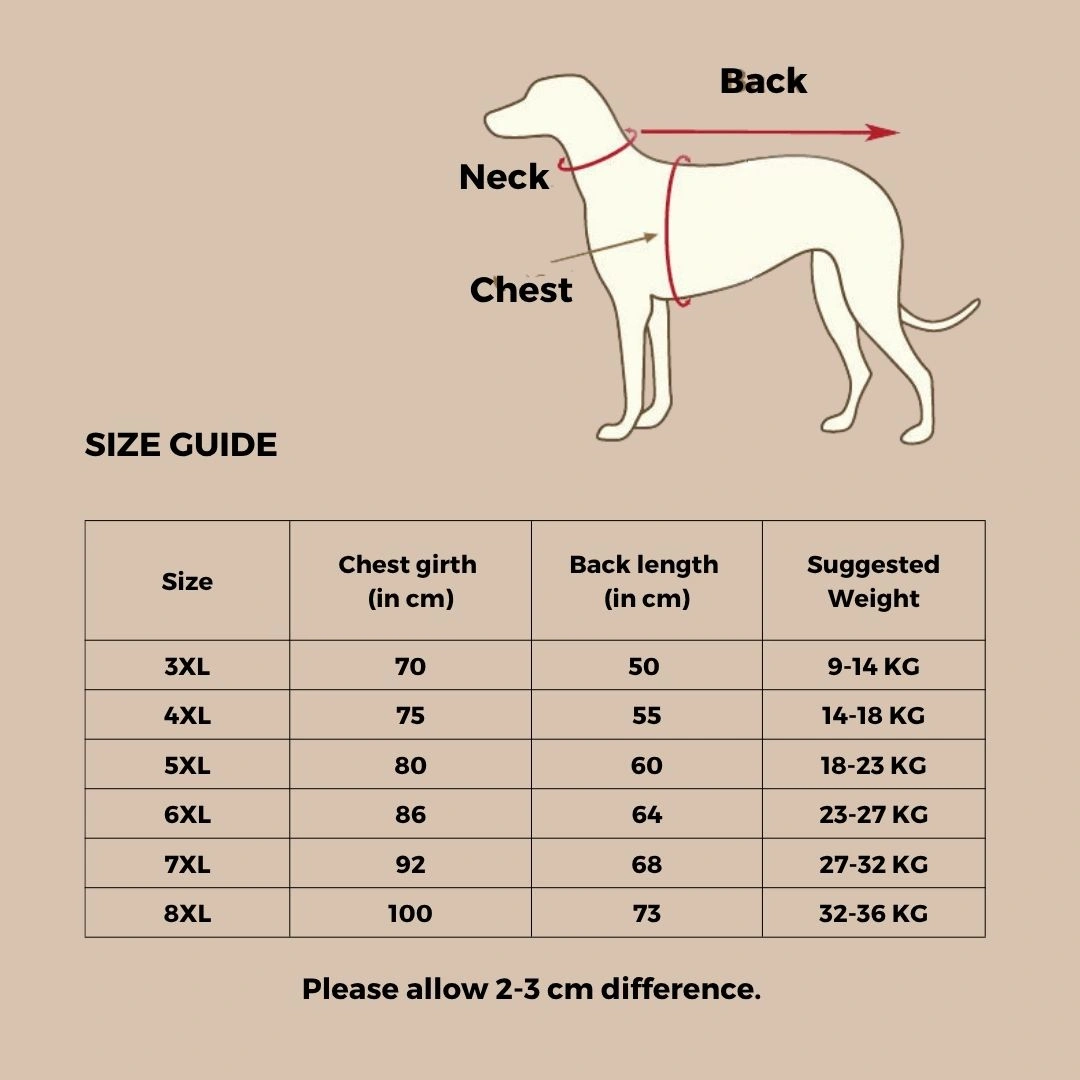 If your dog’s measurements fall between two sizes, we recommend choosing the larger size.