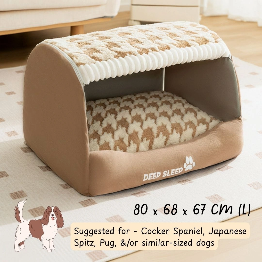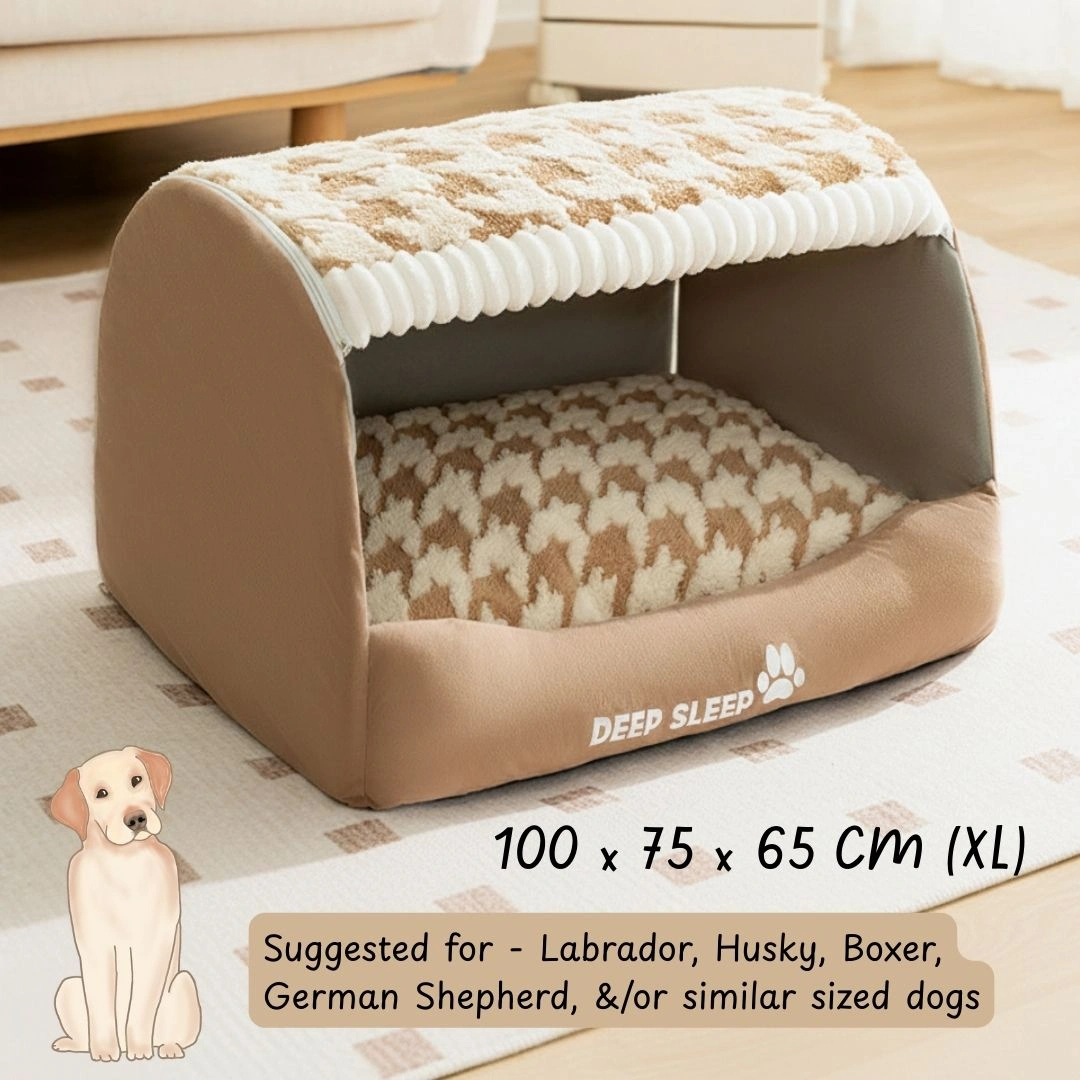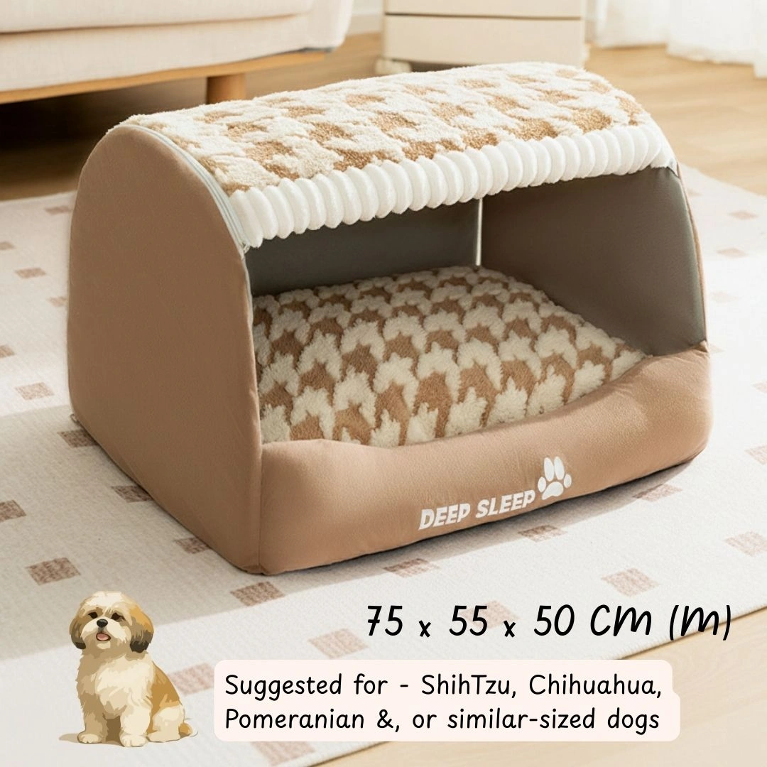 A soft, covered retreat that wraps your dog in warmth and calm. For those deep naps, quiet corners, and comfort.