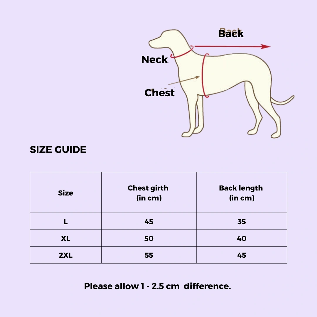 ☑️ Allow 1-3cm difference while measuring your pet.