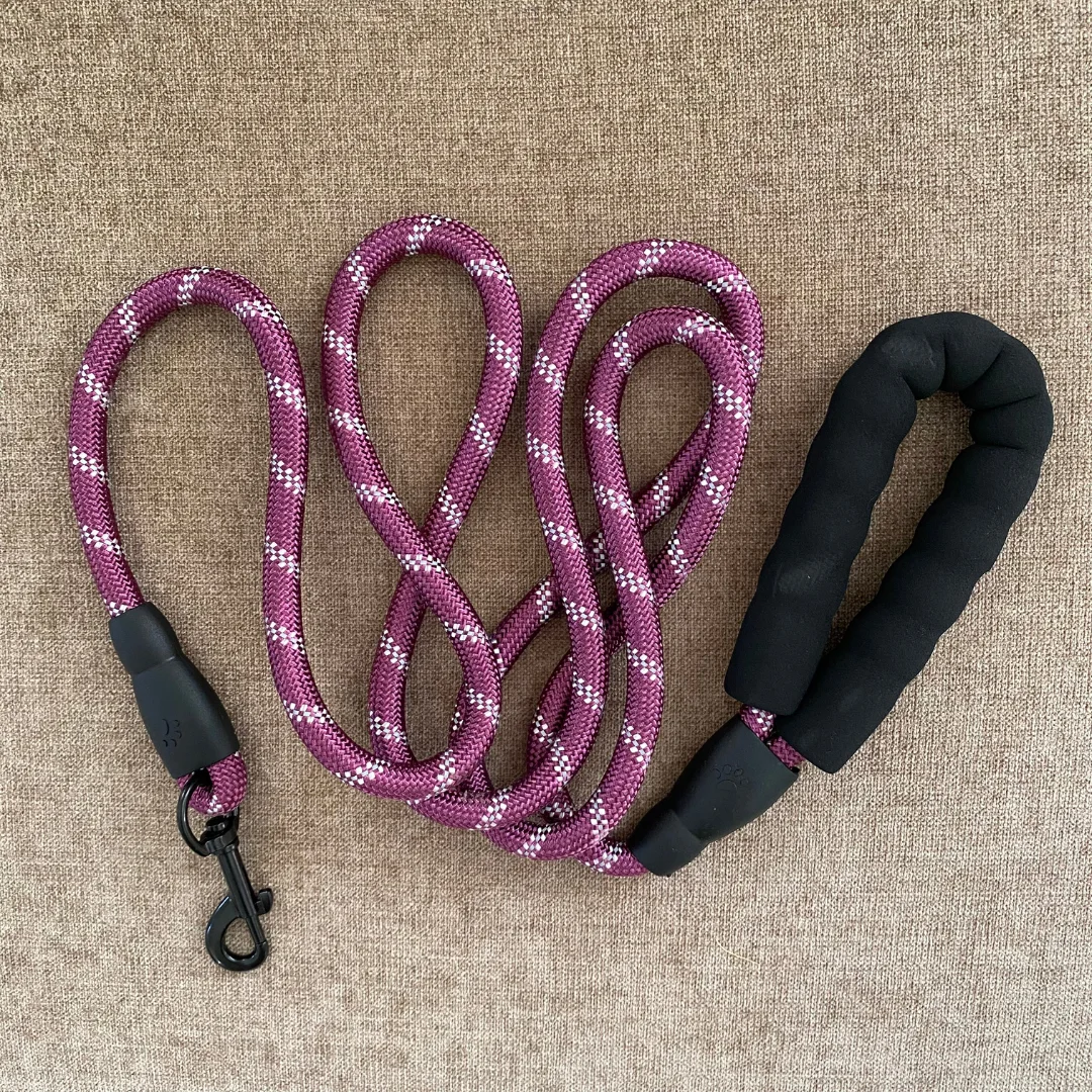 This rope dog leash inspired by mountain climbing gear is tough and durable yet lightweight, and the soft padded handle is comfortable to hold.