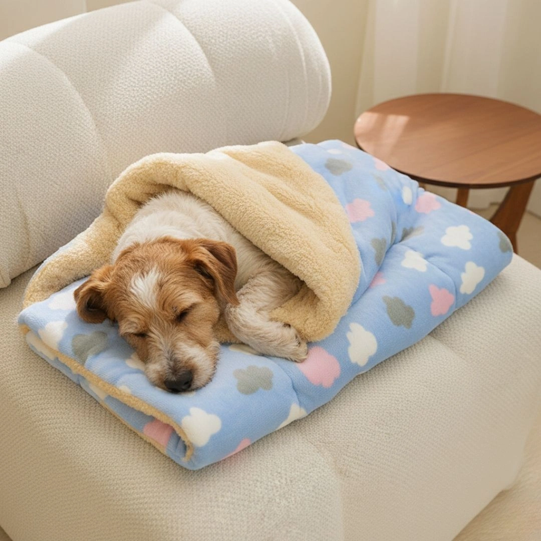 It's our coziest, fluffiest, soft, and snuggly MAT, that can also be used as a BLANKET 🤗 Paw-fect to keep your pup warm and comfortable in the cold weather!