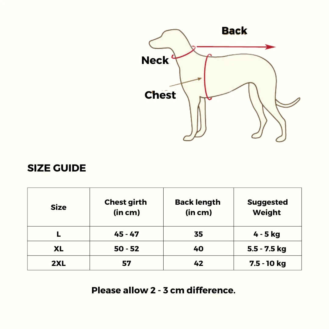 ☑️ If your dog’s measurements fall between two sizes, please select the larger size.