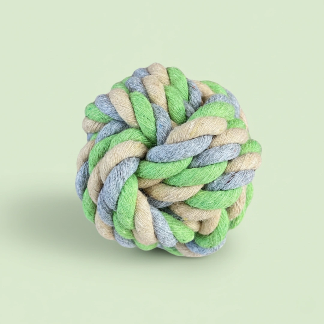 A wonderful treat for your pup to exercise their natural instincts! This twisted rope ball helps steer your dog away from chewing on shoes 👟, furniture, and other no-no’s 🙅♀️. The ball shape is perfect for chewing, tossing, and fetching, keeping playtime fun and enriching.