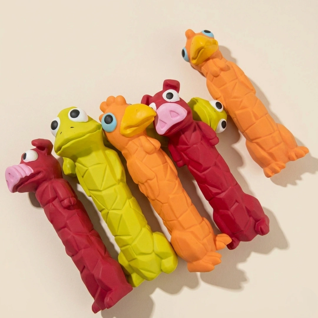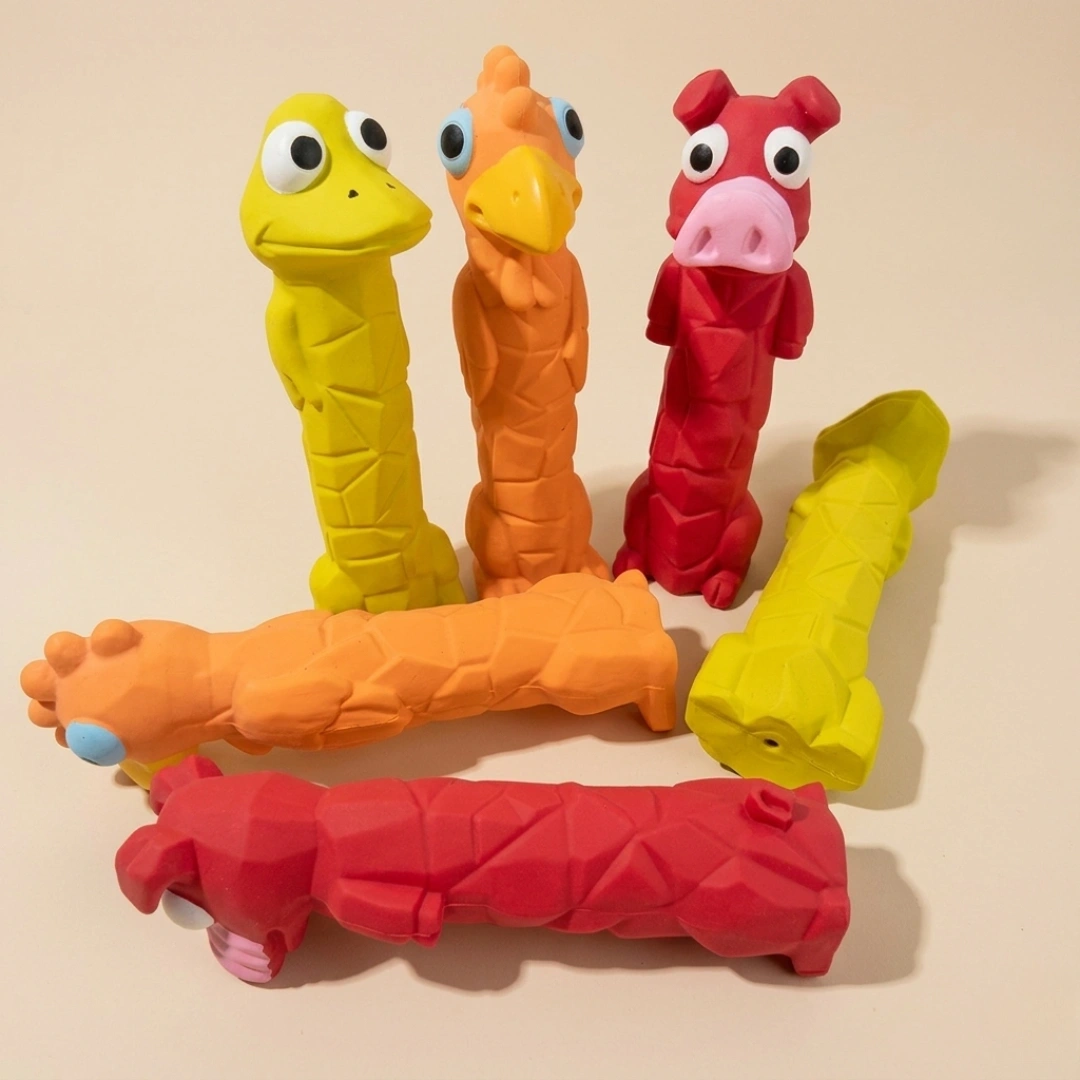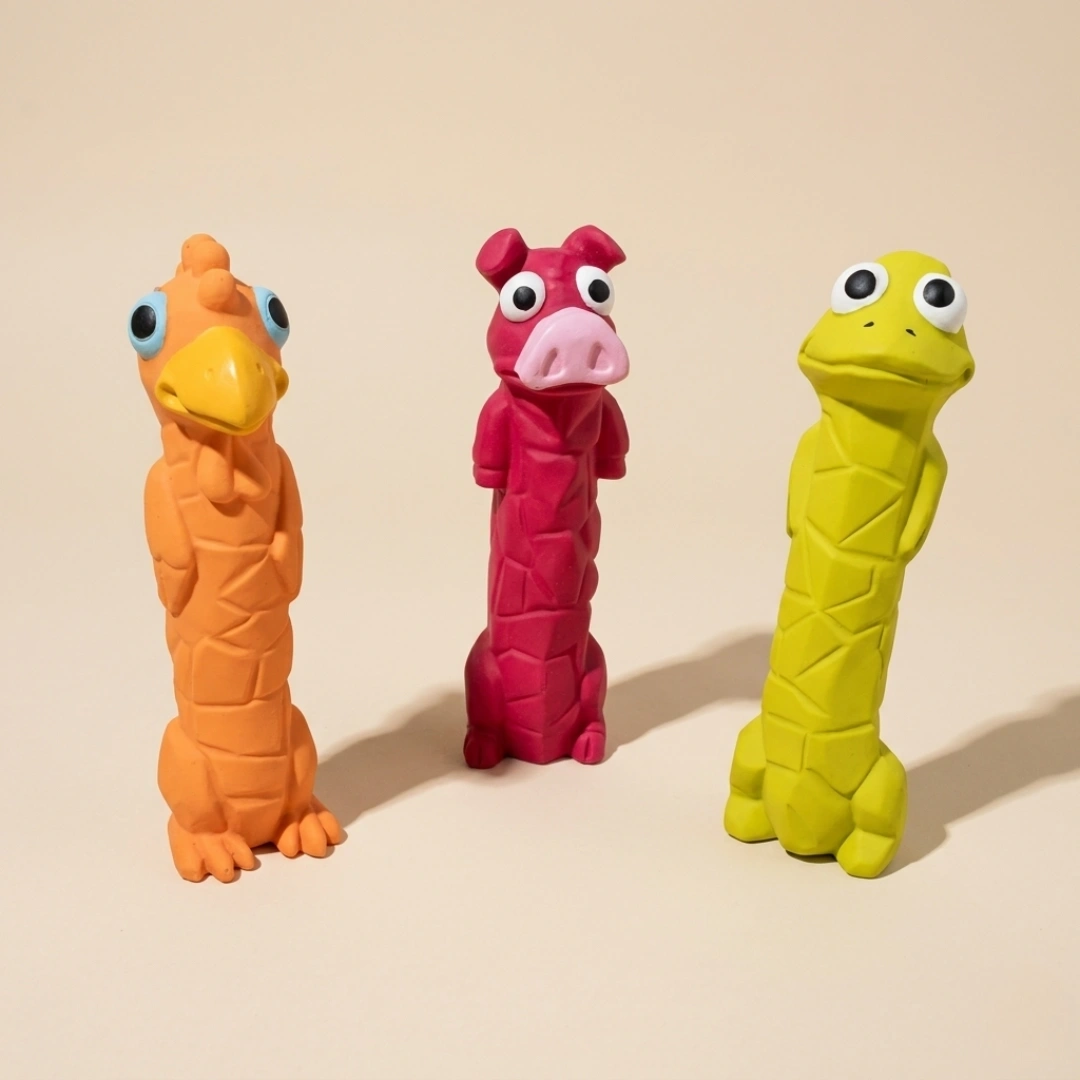 These fun toys are designed for playful pups; long-body latex toys are great for chewing, chasing, and squeaky fun.