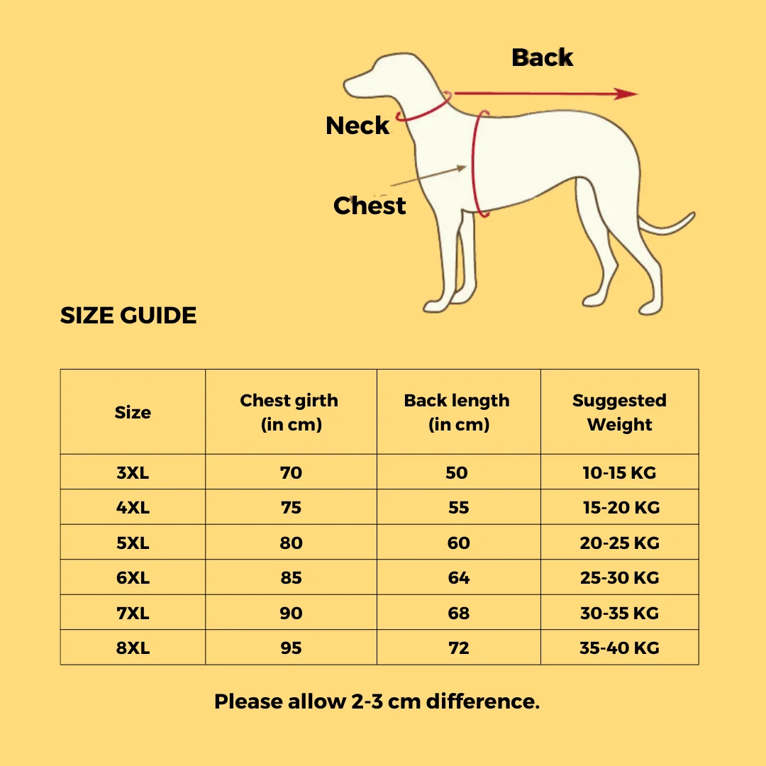 Because the size is manually measured, there may be an error of 2~3cm. If your dog's measurements fall between two sizes, please select the larger size.