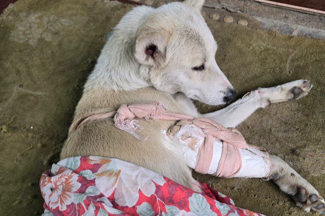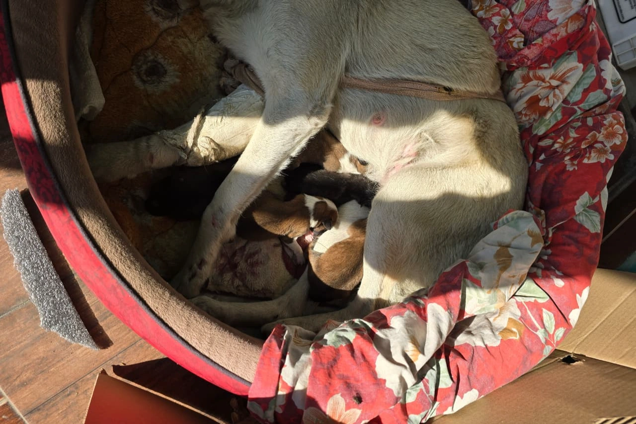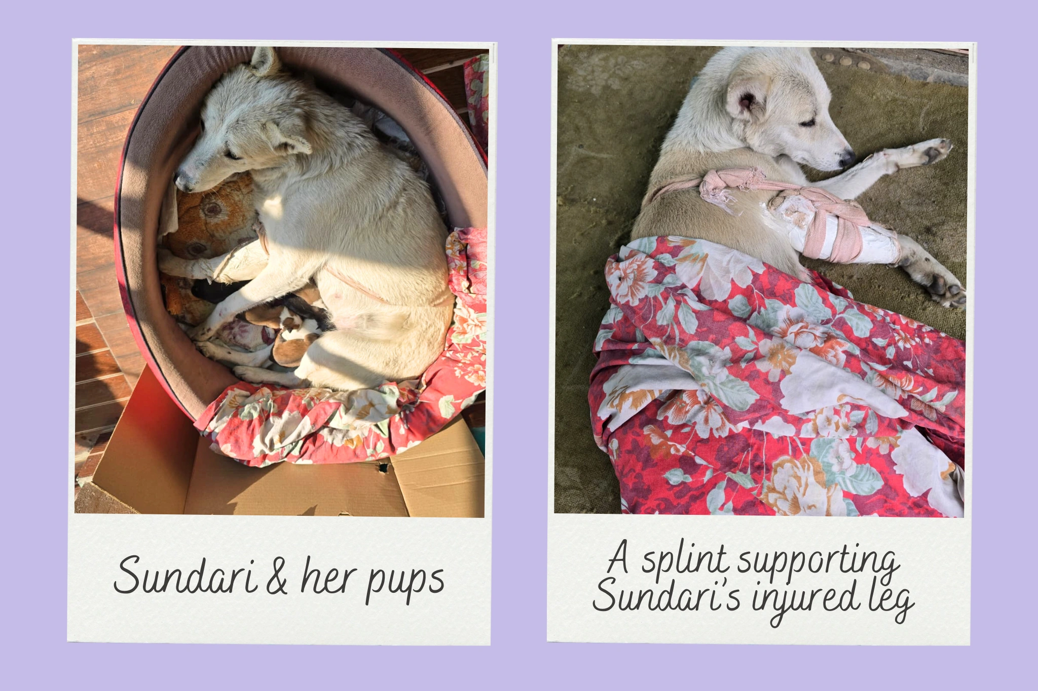 In Kurintar, Renu ji and her family have opened their hearts and home to a very special soul 🤍 Some of you who follow us on Instagram may remember Sundari, the young pup who was hit by a vehicle, suffering shattered front leg bones, all while she was pregnant. Against all odds, Sundari has now given birth to five beautiful puppies.