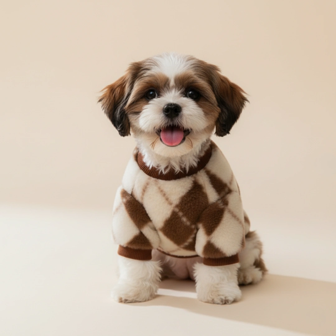 An instant classic for your canine cutie, our checkerboard cardigan!
