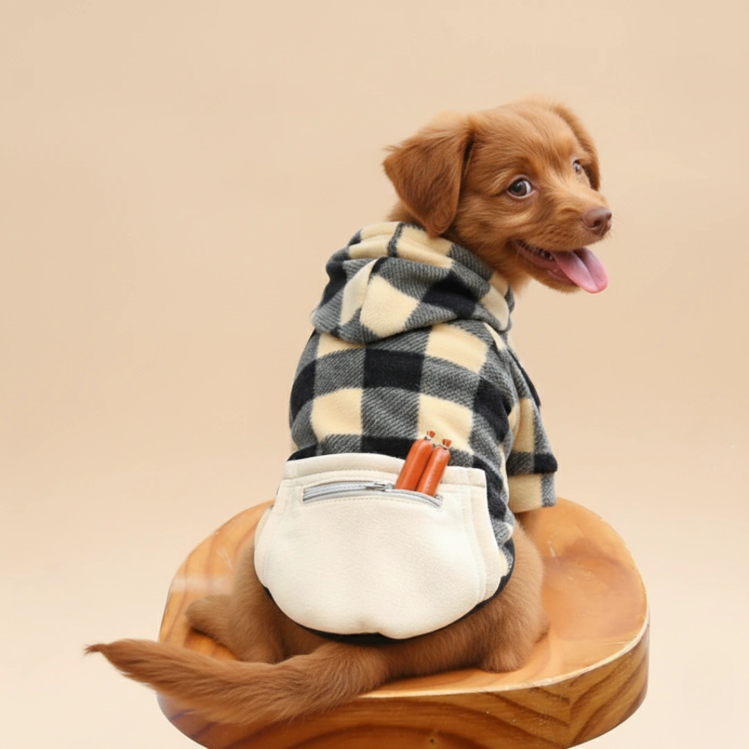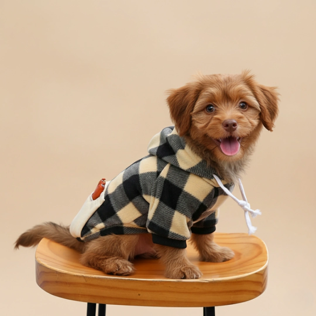 This Checkered Beige Hoodie is designed to fit small-sized dogs (like, toy poodle, shih tzu and similar sized pups) and cats.