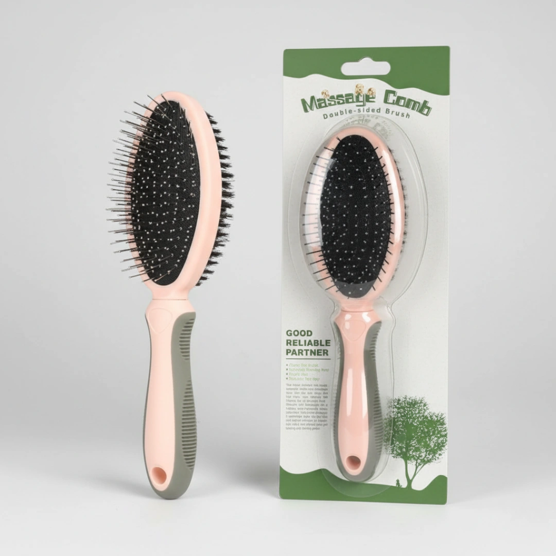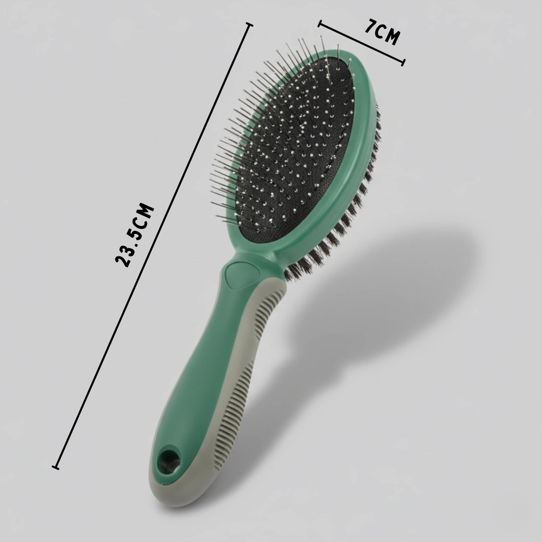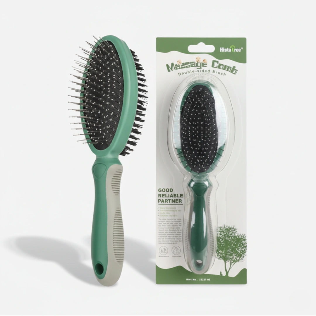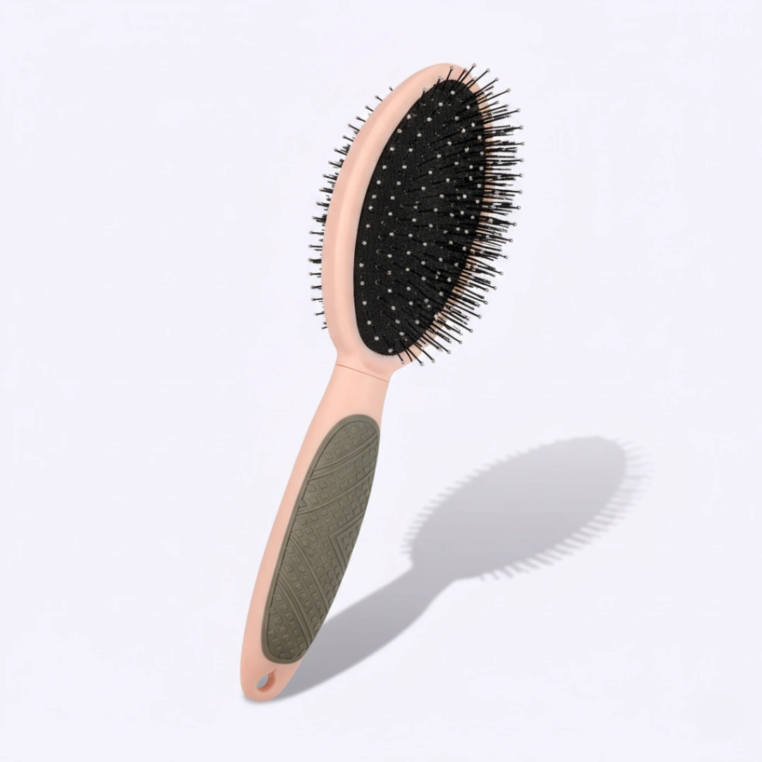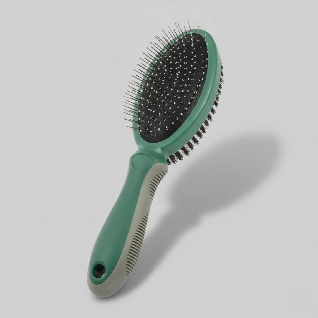 Flexible rounded stainless steel brush pins work great on coats of all lengths